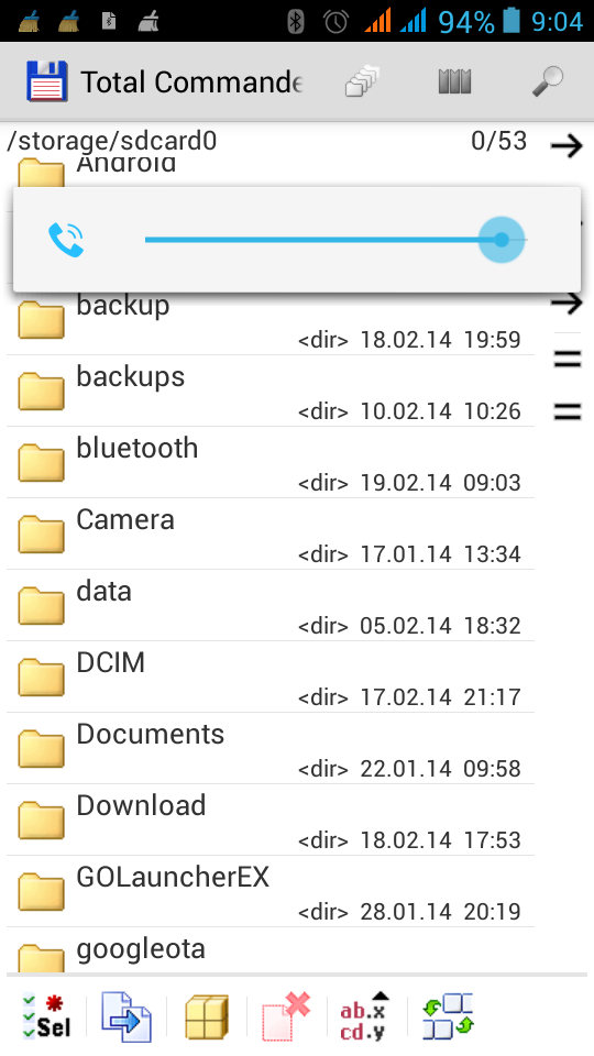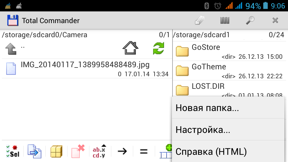 Total Commander на Android пришел сравнительно недавно, поэтому полезных и оригинальных фич у него пока что не так уж и много. И начнём сразу же с его особенностей. Как и во многих наиболее популярных файловых менеджерах, в него есть двойная панель с окнами, но здесь она выполнена не как в случае с FX, а «по стандарту». То есть обычное переключение вправо-влево. Total умеет скрывать или показывать системные скрытые файлы и папки. Еще как и всегда стандартный перечень функций типа «удаление/копирование/перемещение/переименование». Еще ему подвластно изменение атрибутов файлов или папок, то есть Вы можете сделать так, чтобы было невозможно редактировать файл(не сможете переименовывать, перемещать и т.д.) а если это например текстовый документ, Вам не удастся изменить его текст.
