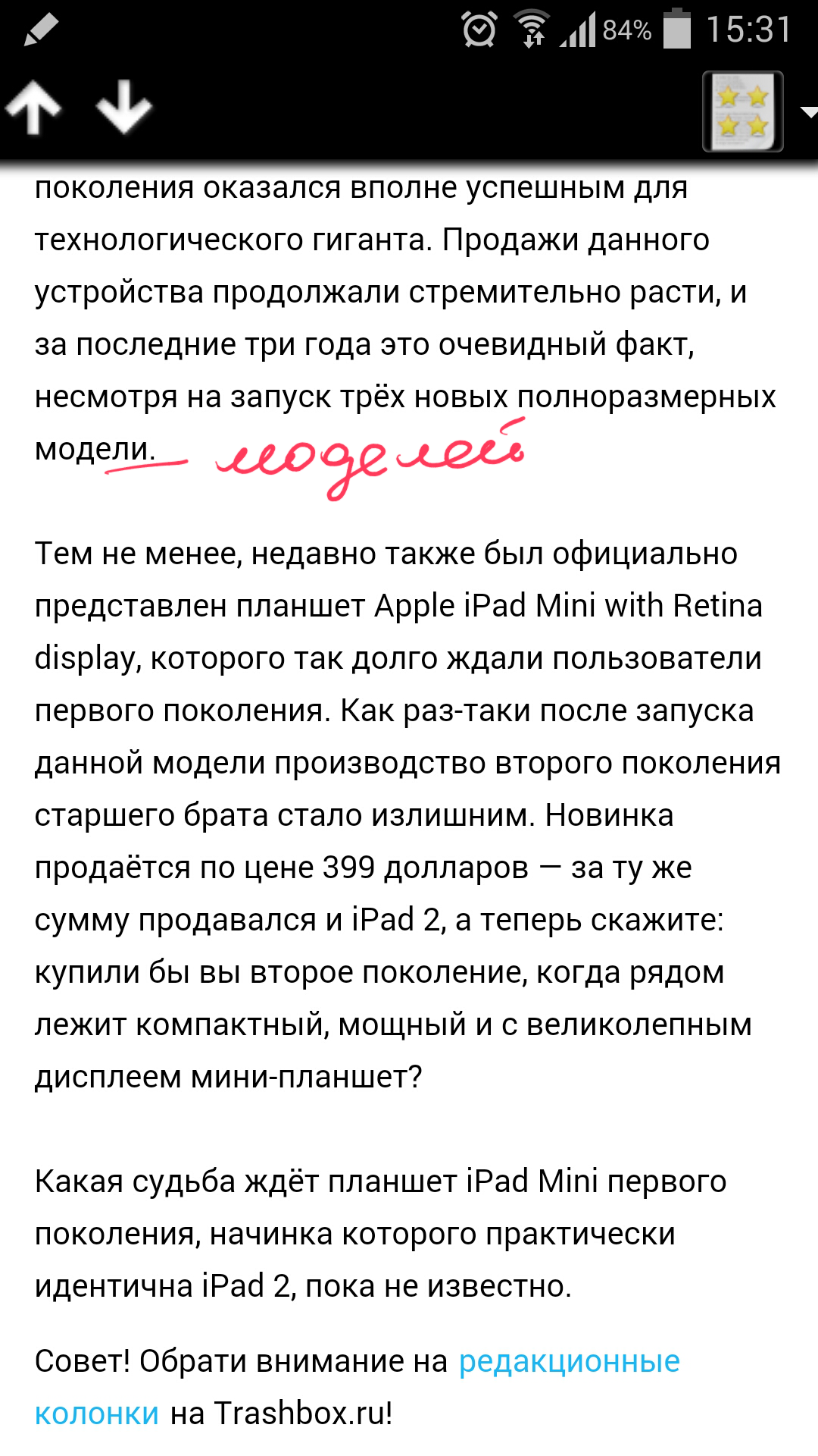 Тем не менее, недавно также был официально представлен планшет Apple iPad Mini with Retina display, которого так долго ждали пользователи первого поколения. Как раз-таки после запуска данной модели производство второго поколения старшего брата стало излишним. Новинка продаётся по цене 399 долларов — за ту же сумму продавался и iPad 2, а теперь скажите: купили бы вы iPad 2, когда рядом лежит компактный, мощный и с великолепным дисплеем мини-планшет?