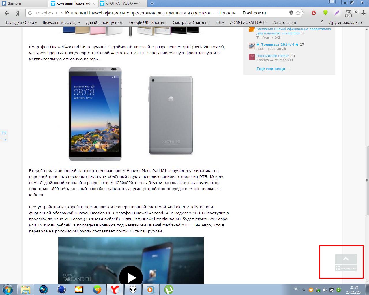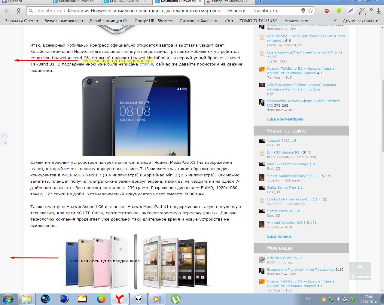 17 февраля 2014, 18:01 КНОПКА НАВЕРХ Вопросы Ну сколько можно ждать? я не думаю что её так трудно запилить… Фёдор @Florisch Бронзовый комментатор 35 комментариев по лайкам по дате Оставьте комментарий... tester 11 лет Кнопка Home в помощь. Florisch 11 летАвтор не думаю, что у меня на компе есть кнопка домой Vinni44 11 лет Она на клаве. Home — вверх, End — вниз. justmax437 11 лет Это тебе так кажется R00T 11 лет Я нашел альтернативное решение проблемы. Что нам нужно Гугл хром или яндекс браузер Это расширениеИ та-дам кнопка на всех сайтах aqwsderf 11 лет А Firefox? denosaur 11 лет Спасибо R00T 11 лет Или еще круче тоже хром или яндекс Вот это расширениечто получается: denosaur 11 лет Ты чуть неправильно написал. Если кликнуть внизу, всё равно поедем вверх. Это не имеет значения, где нажать, просто когда мы уже вверху страницы, если нажать там сбоку, то тогда оно поедет вниз R00T 11 лет Я указал это в отдельном топике, заметил. denosaur 11 лет Я тебя отблагодарил плюсом в этом комменте и выше Rost 11 лет БОЛЬШЕ КАПСА В ЗАГОЛОВКАХ del 11 лет а если на вкладку нажать сверху нажать в яндекс.браузере, то он перематывает страницу наверх. R00T 11 лет А если еще раз, то вниз JAC 11 лет Я в личке с ним это обсуждал Вывод — кнопка Home в помощь TimAxe 11 лет Не флудите в топиках, тогда и прокрутка колесиком будет на пару сотен оборотов меньше danil149 11 лет согласен этого не хватает когда статьи большие 2105 11 лет если бы это легко, то Бобс бы запилил.Сейчас у него есть другие дела, помимо кнопочки tester 11 лет Да полно описаний, как создать эту кнопку. Поверхностный гуглинг выдает хотя бы это и это. Florisch 11 летАвтор вот именно, кнопочка. очень маленькая, но нужная кнопочка. и я не думаю, что создание скрипта для кнопки займёт времени больше 20 минут Оставьте комментарий...