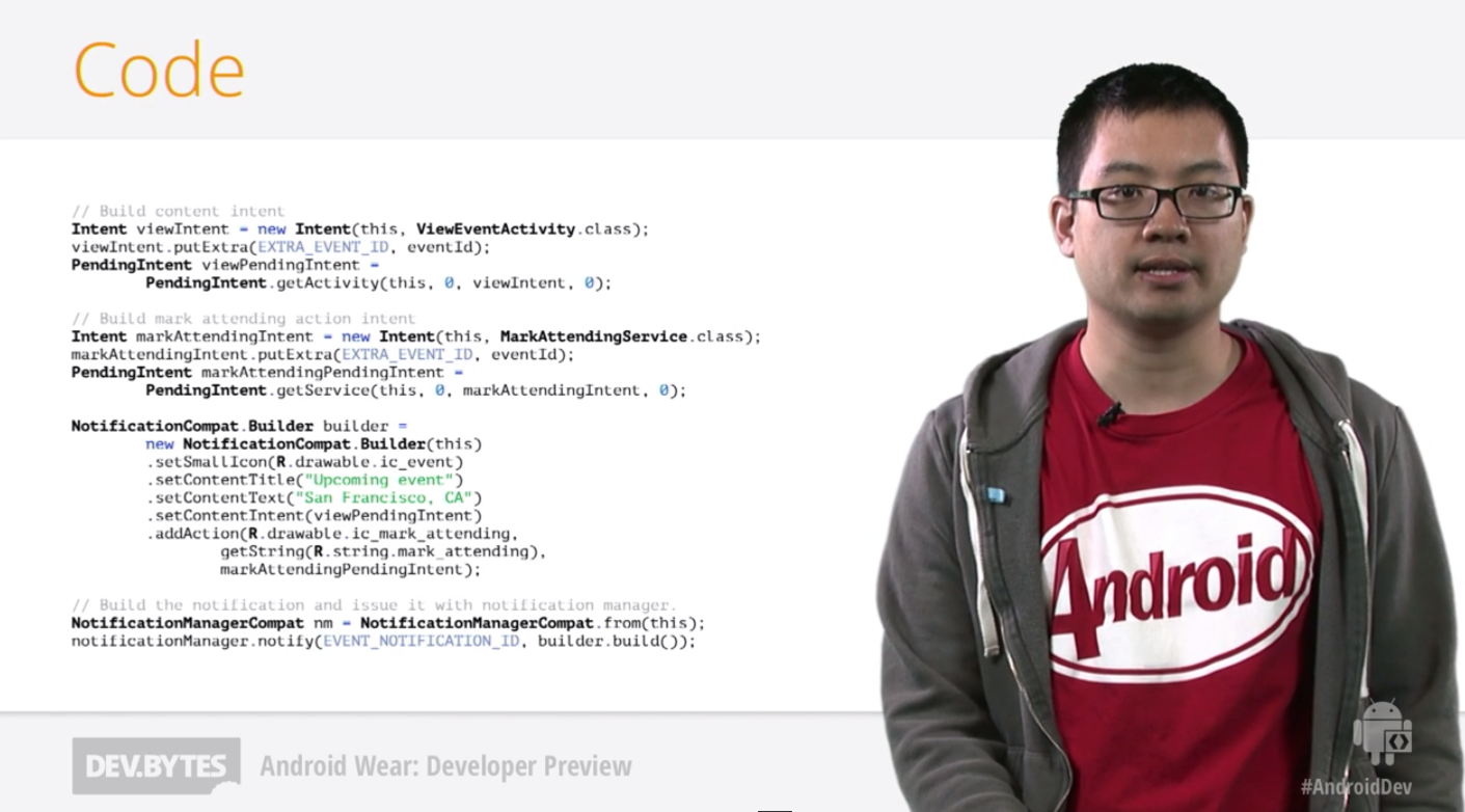Днём ранее компания Google официально представила миру мобильную платформу для носимой электроники — Android Wear. Относительных деталей вчера расркыто не было, но они постепенно появляются. Сегодня в видеохостинге YouTube от официальных девелоперов компании появились два видеоролика, демонстрирующих взаимодействие носимого продукта под управлением операционной системы Android Wear с мобильным устройством типа смартфона или планшета.