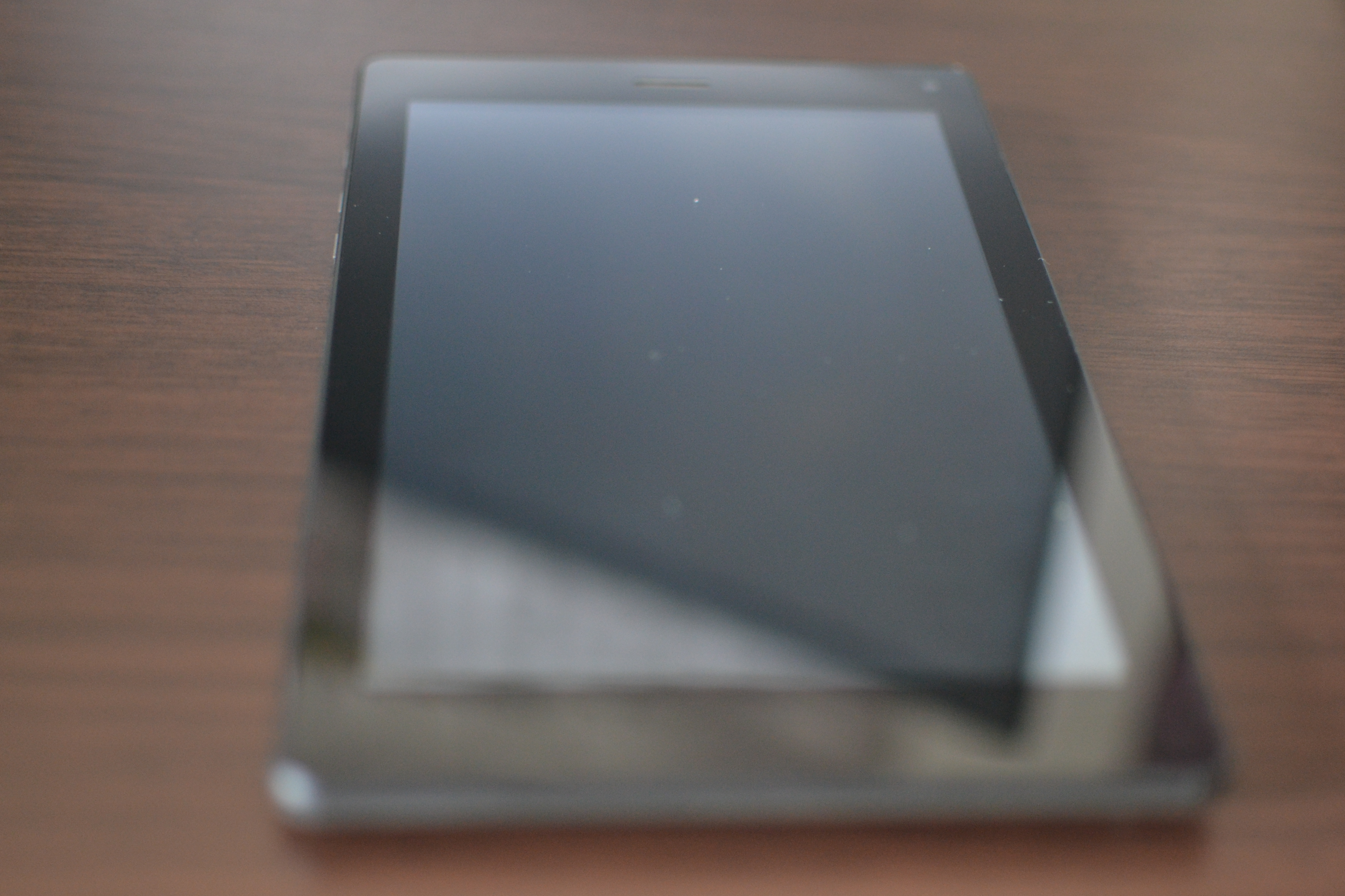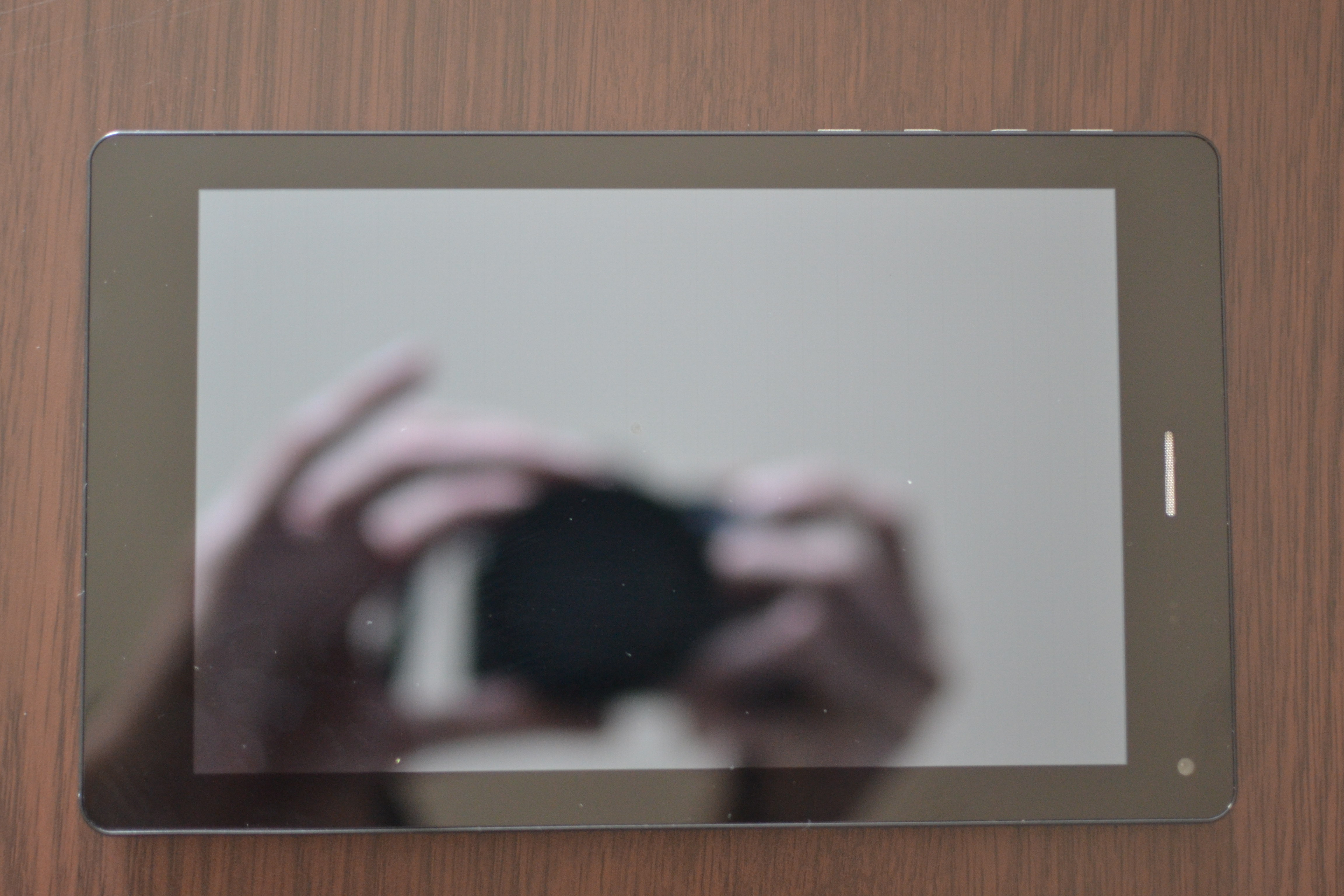 Сверху на раме расположены динамик, прикрытый металлической сеткой, датчики освещения и приближения и фронтальная камера. Расположение динамика очень удачно, ведь его невозможно случайно прикрыть пальцами, а значит и звук не будет заглушаться, если вы будете держать планшет в руках или просто положите на стол и тем самым закроете динамик, расположенный сзади (там же камера и кнопка сброса).