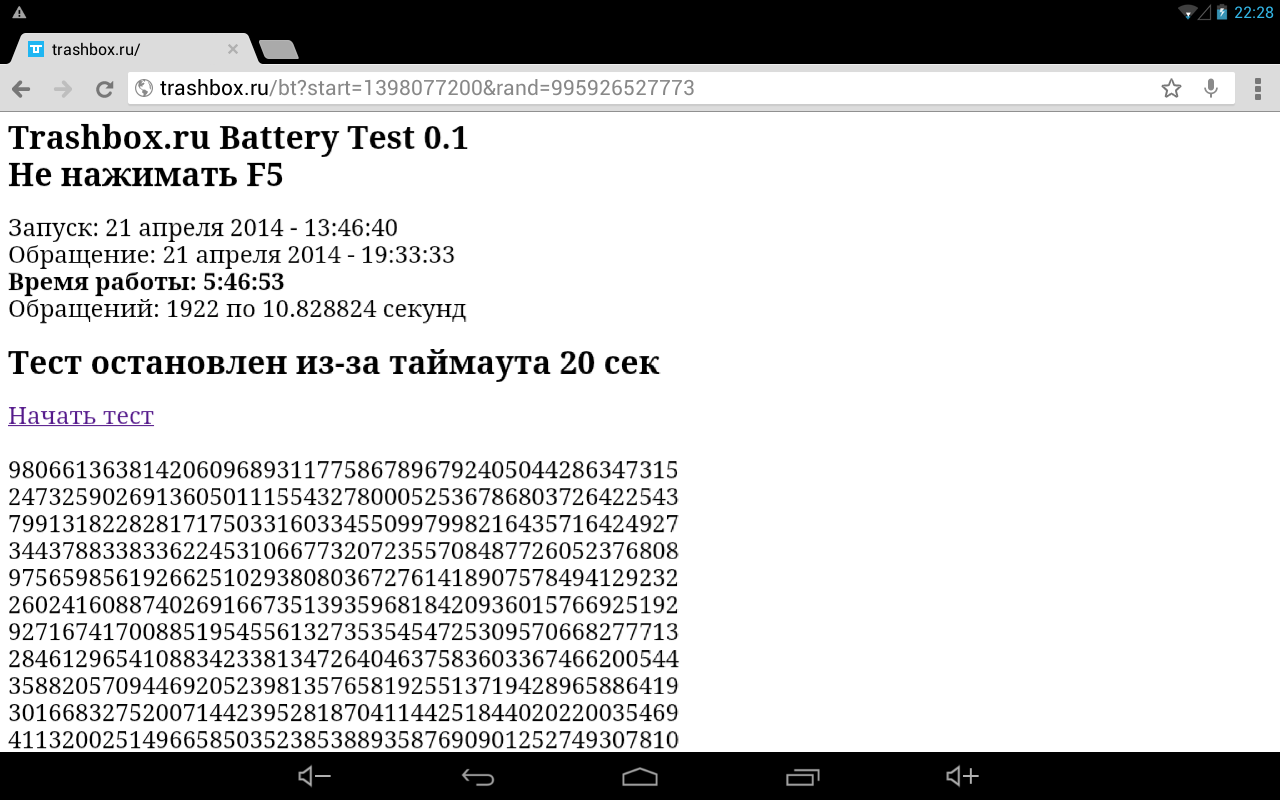 В тесте на проигрывание бесконечного видео на 100% яркости и максимальной громкости показал чуть более 2-х часов.