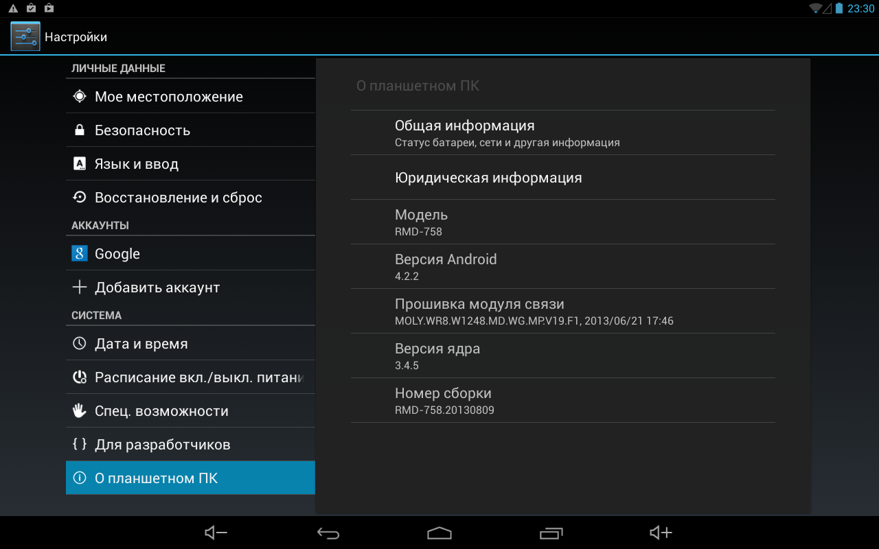 Включив RMD-758, вы увидите Android 4.2.2. Никаких особенных обновлений в ближайшем будущем не ожидается, но думаю, помимо исправлений багов, они и не нужны.