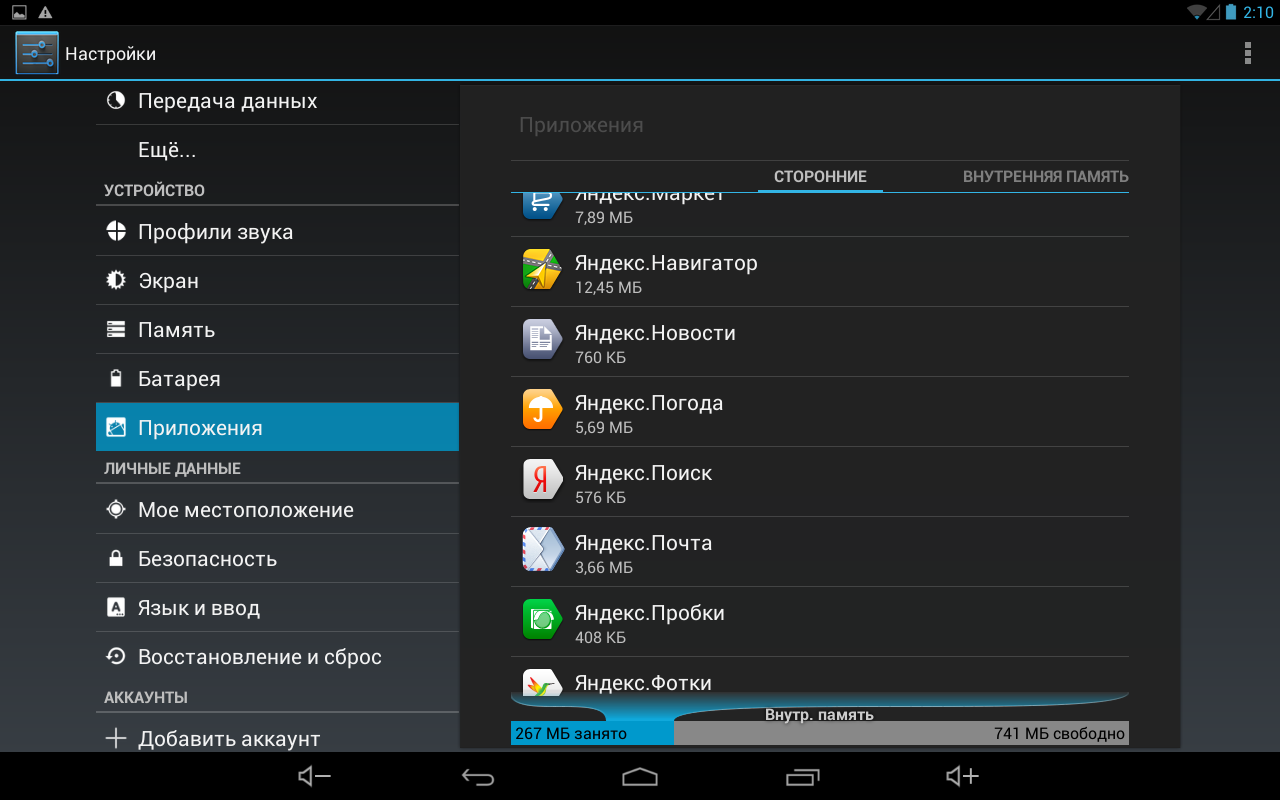 На планшет сразу установлены стандартные и привычные для всех пользователей Android-гаджетов аудио и видео проигрыватели, открывающие файлы любого формата и разрешения и дефолтный набор программ от Яндекса
