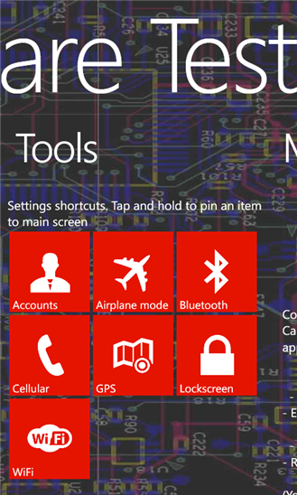 Данное приложение представляет из себя программу-тест, которая тестирует дисплей на битые пиксели, акселерометр, вибрацию, микрофон, ориентацию экрана, количество касаний, камеру, компас, фонарик, GPS, микрофон и многое другое.