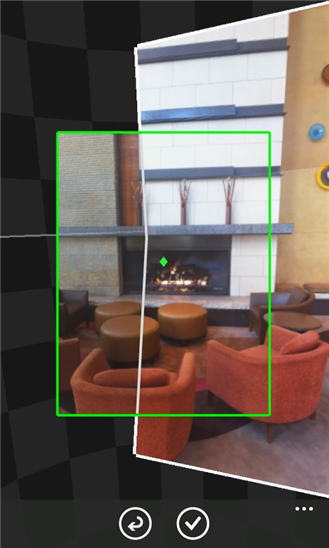 Данное приложение — единственная «панорама», которая снимает на 360 градусов и доступно для всех мобильных платформ. Интерфейс очень простой и понятный: Вам следует нажать на «Tap to start», как начнется съемка. Вам лишь следует поворачивать телефон как вы хотите, что бы зеленый квадратик автоматически делал фото (смотрите скриншот ниже).