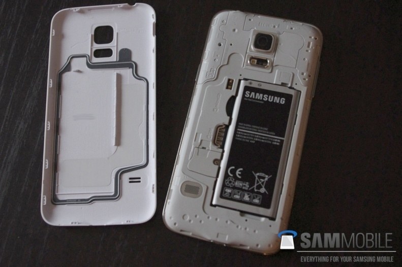 Глядя под капот предполагаемого смартфона Samsung GALAXY S5 Mini, можно заметить, что основные компоненты, включая аккумулятор, расположились с правой стороны и сам по себе аккумулятор имеет меньшие размеры по сравнению с оригиналом, что добавляет некоторую правдоподобность информации, мол, это мини-версия.