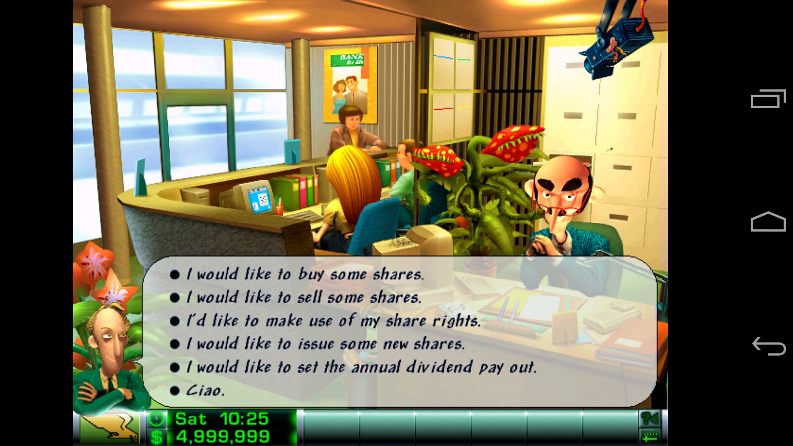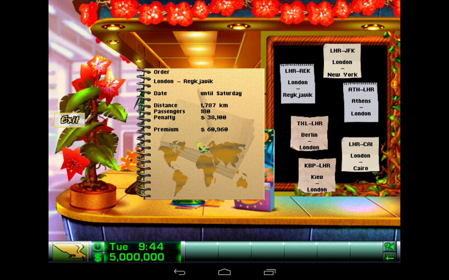 Airline Tycoon Deluxe — отличный симулятор управления авиакомпанией, вот уже несколько лет покоряющий все больше и больше геймеров на всех игровых платформах и вот наконец прикоснуться к этому мега — хиту появилась и обладателей Android устройств. Успех этой игры объясняется довольно просто, это симбиоз реалистичной модели управления крупной компанией и большая доля юмора. Вам предстоит взять на себя роль управляющего крупнейшей авиационной компанией, реалистичная экономическая модель, в которой все изменения происходят в режиме реального времени, ваша задача не только выбирать наиболее выгодные контракты, следить за тем чтобы пассажиры оставались довольны, но и принимать решения о строительстве и испытании авиатехники. Вся игра выполнена в стиле классических комиксов и наполнена юмором, особенно касательно взаимоотношений с конкурентами, следите за коварными соперниками, никогда не знаешь чего от них ожидать, пробравшийся на вашу территорию представитель конкурента может заметно осложнить работу вашей компании, например плюнуть в суп пассажиру, если такое случилось вы всегда сможете совершить ответный «визит».