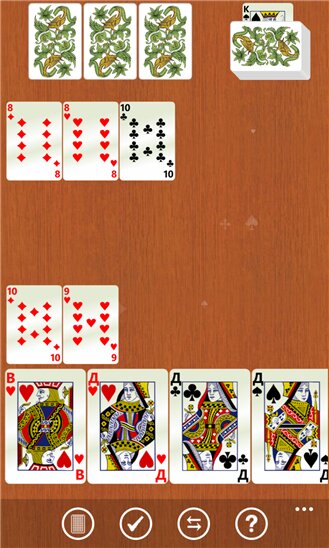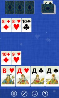 Можно выбрать рубашку карт, вид карт и игровой стол. Игра сохраняет свое состояние при выходе или переключении в фон. Сохраняется статистика по результатам игр. В игру встроено описание правил.