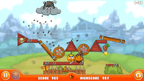 Построй укрытие для защиты апельсинов, используя новые элементы головоломок, среди которых — стеклянные блоки, динамит, батут и другие!