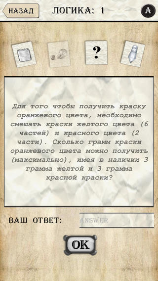 Вы знали что личность Леонардо Да Винчи до сегодняшнего дня окутана тайнами? Каждое его изобретение представляет собой загадку великого гения, который на много лет опередил своё время. Именно этому таинственному персонажу нашей истории посвящается игра студии Planemo “Загадки ДаВинчи”. В «Загадках ДаВинчи» вам предстоит решать различные загадки на сообразительность. Для удобства они разделены на 4 основные категории: Логика, Математика, Загадки общества «МЕНСА» и История.Изначально открыто по одной загадке в каждой категории. Каждая из отгаданных загадок открывают две последующие. Также присуствует дополнительная категория «W-EXTRA», доступ к загадкам которой зависит от полученных достижений.