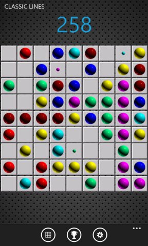 На экране показано квадратное поле 9×9 клеток, в случайные клетки на котором программа выставляет три шарика разных цветов. Всего 7 возможных цветов. За один ход игрок может передвинуть один шарик, выделив его и указав его новое местоположение. Для совершения хода необходимо, чтобы между начальной и конечной клетками существовал путь из свободных клеток.