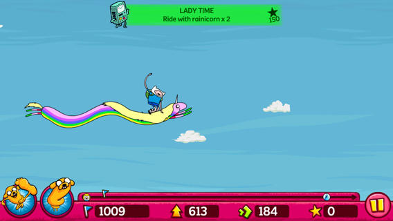 Замок Снежного короля находится в далекой Ледяной стране. Чтобы помочь Финну добраться туда и вызволить Принцессу из плена, Джейк должен всю дорогу отвешивать ему пинки. От мощного пинка Джейка Финн взмывает ввысь. Помогай ему как можно дольше держаться в воздухе, хватаясь за падающие звезды, катаясь на Леди Ливнероге или получая ускорение от ударов топора-гитары Марселины. И остерегайся пингвинов!