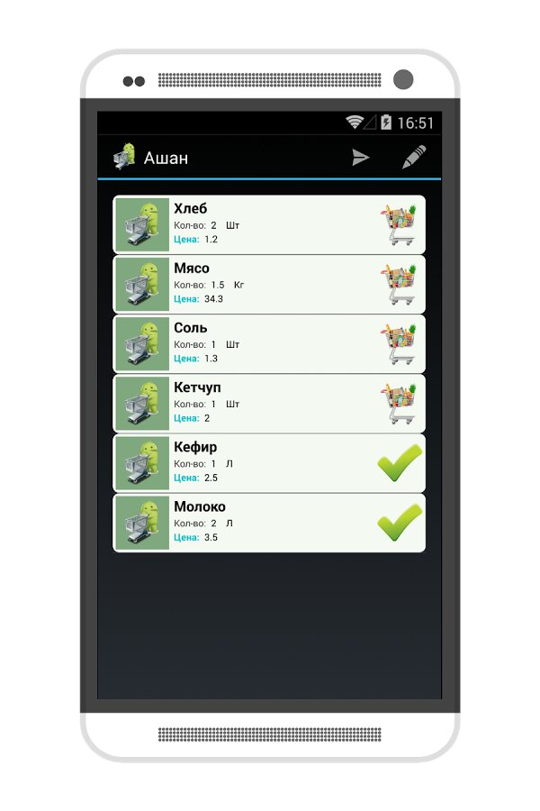 Приложение поможет вам ничего не забыть купить в магазине. Просто создайте список и отмечайте уже купленные товары.