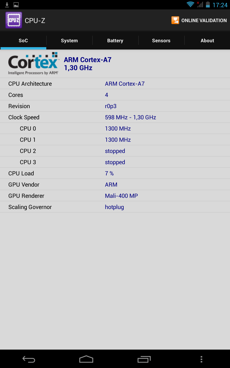 BB Mobile techno 7.0 базируется на чипсете MediaTek MT6572, который включает два ядра ARM Cortex-A7 и графический ускоритель Mali-400MP. Чипсет в первую очередь предназначен для смартфонов, но данный планшет и представляет собой «пересмартфон», так что в этом нет ничего страшного.