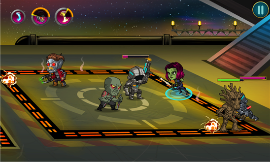 Помогите Звездному Лорду собрать команду из опытных героев: Ракеты – инопланетного оружейника с дурным характером; Грута – древообразного существа, обладающего недюжинной силой; Гаморы – ловкой охотницы за головами; Дракса Разрушителя – мстительного спеца по ближнему бою. Выполняйте опасные задания, используйте особые навыки в бою с противником – одерживайте победы!