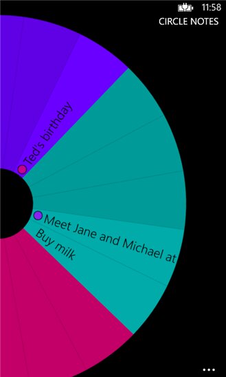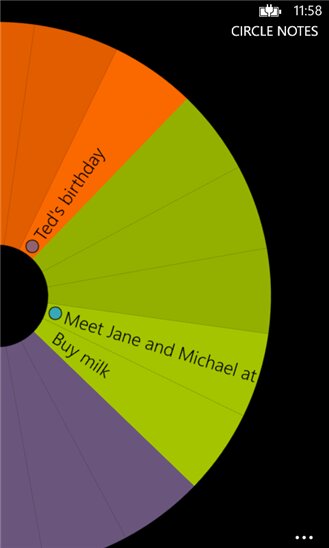Circle Notes — это простое приложение с удобным минималистичным интерфейсом, которое позволяет с лёгкостью управлять списком заметок и задач. Цветное колесо на черном экране весьма контрастно выглядит, что позволит вам быстро отличить одни задачи от других, расположить их по приоритету, времени выполнения или иным критериям.