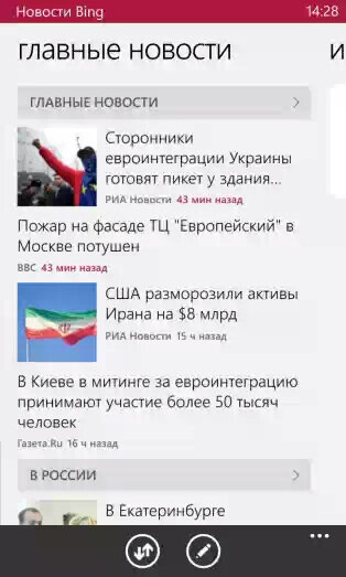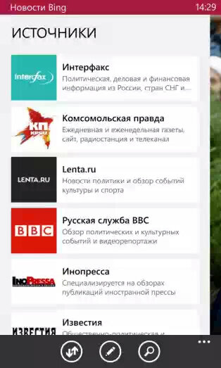 Bing News для Windows Phone — С помощью этой программы вы всегда будете в курсе самых последних новостей со всего мира. Получайте информацию из самых достоверных источников и только на интересующие вас темы всего в несколько кликов.