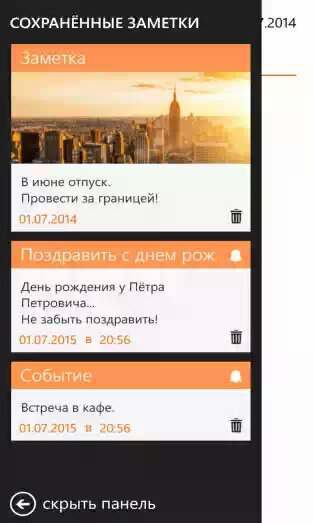 Заметки для Windows Phone — Удобная программа для создания небольших заметок на вашем мобильном устройстве. Вы сможете не только создавать новые заметки, но и редактировать уже созданные, устанавливать уведомления на нужные вам заметки, отправить их по SMS или электронной почте, поместить на рабочий стол устройства или прикрепить к заметке изображение. Управление программой станет ещё проще благодаря поддержке жестов.