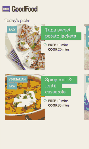 Учитесь готовить, и хотите попробовать что-то новое, например, мороженое в домашних условиях, или стейк тогда нелишним будет установить себе на телефон кулинарное приложение BBC Good Food. Загрузив его, вам откроется меню с шестью кулинарными коллекциями. Для вас будет доступна только одна, все остальные можно открыть заплатив $1.49, за каждую. Это большой минус программы, но поверьте, оно того стоит. В бесплатной «Классической коллекции» вы сможете выбрать что-то интересненькое приготовить покушать для себя. Она включает в себя 20 разных блюд. Впечатляет интересная графика и дизайн, а также сочетание цветов – открыв рецепт, вы увидите большую картинку-изображение самого блюда, а поверх него и сам рецепт.
