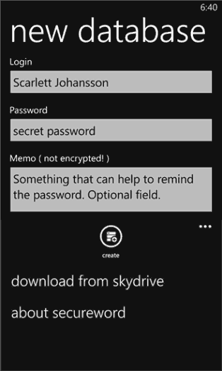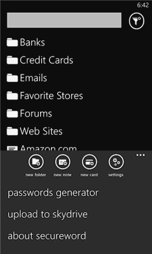 Если вы всегда забываете пароли, или же разную конфиденциальную информацию, а также информацию о кредитных картах, тогда приложение SecureWord точно подойдёт вам. Это хорошая программа для хранения личных данных. Она доступна как для Windoes Phone Store, так и для Windows XP/7/8, жаль, что версия для Android и iOS ещё не разработана. Все информационные данные можно зашифровать с помощью криптографических компонентов: SHA256, PBKDF2, AES+CBC and PRNG. Лёгкая и доступная в использование программа, где вы сможете создать большое количество разных заметок, и в этом не будет никакого ограничения. Все необходимые данные вы сможете найти очень бистро, с помощью функции поиск, необходимо только начать вводить необходимое слово, и тут как тут, все появится.
