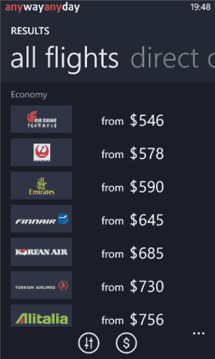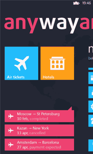 Разработчики программ создали прекрасное приложение для покупки авиабилетов в любой стране мира. Данное приложение бесплатное, но оно на столько простое и понятное, что не каждый платный аналог может стать с ним вровень. К базе подключено более 800 авиакомпаний, которые предложат свои возможные варианты перелета и вам остается выбрать самый подходящий из них. Заказать билеты на авиарейс очень просто, достаточно подключится к сети Wi-Fi и запустить приложение AWAD. В настройка задать параметры для перелета — пункт вылета -> пункт назначение. После ввода данных, программа выдаст вам целый список вариантов: прямой перелет, перелет с пересадкой, выбор аэропорта, время вылета и посадки, а также стоимость воздушной поездки. После того как вы определились с выбором, вам только остается оплатить стоимость через банковскую карточку. Через пару минут на смартфон придет SMS с оповещением о данной покупке, а также маршрутная квитанция, которая отправлена на вашу электронную почту. Кроме того, есть возможность бронирования авиабилетов, с отсрочкой покупки.