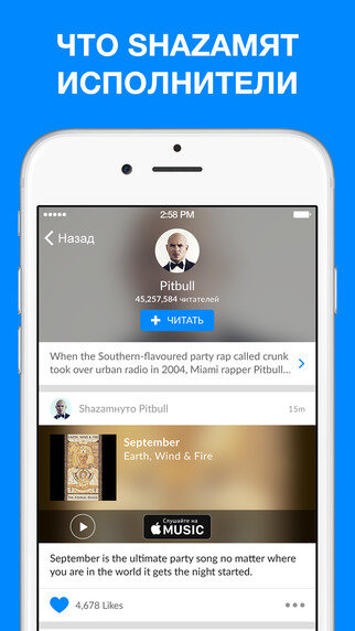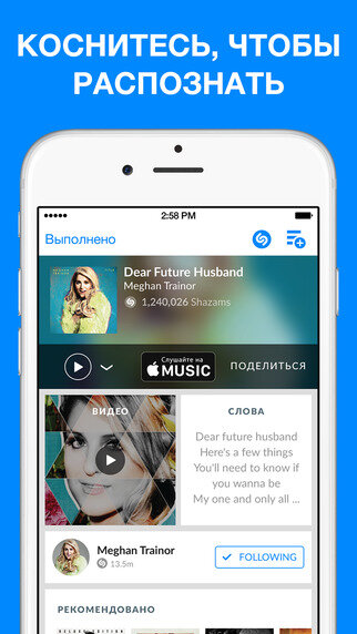 Программа позволяет «распознавать» звучащую поблизости музыку и некоторые другие аудиоматериалы. Достаточно только нажать на кнопку приложения, и программа автоматически найдёт в Интернете название композиции, имя исполнителя и данные о нём, а также (в некоторых локализациях) текст песни. Программа интегрирована с iTunes и YouTube, а также с социальными сетями. Есть функция для сохранения тегов и просмотра мировых музыкальных рейтингов на встроенной карте. Пользоваться программой можно даже в оффлайне — она «запомнит» звучащую песню и при соединении с Интернетом распознает её. Управление программой простое, интерфейс стильный, в приятной светло-синей цветовой гамме. Пробная версия содержит рекламу, для того чтобы её отключить, нужно приобрести годовую или неограниченную подписку.