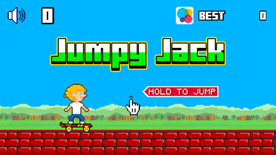 В этой игре участнику нужно помочь мальчишке на скейте проехать все многочисленные уровни, преодолевая препятствия в виде кирпичных столбиков. Игровой процесс напоминает Flappy Birds, однако у Jumpy Jack геймплей более динамичный. С каждым уровнем игра становится сложнее — препятствия стоят ближе друг другу, их высота меняется. Графика в игре двумерная, стилизованная под игры конца прошлого столетия, цветовая гамма приятная. Управление удобное. Игра бесплатная и не содержит рекламы.
