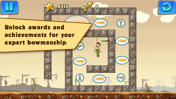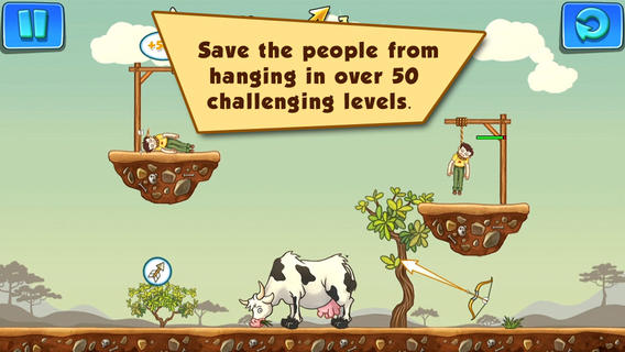 Действие этой игры происходит в суровой пустыне, где главному герою не встретится ни одного человека — кроме… повешенных на ветвях сухих деревьев. И единственный способ спасти несчастных — метким выстрелом из лука перебить верёвку. Целиться при этом нужно очень тщательно, чтобы вместо спасения не пристрелить висельника. Уже на первом уровне можно почувствовать себя настоящим Робин Гудом — непревзойдённым стрелком из лука и защитником слабых. А всего в игре 50 уровней, каждый из которых сложнее предыдущего: повешенных становится больше, прицелиться мешают камни, а грифы-стервятники нападают со всех сторон. Зато есть и бонусы, открывающие доступ к новым уровням и помогающие в стрельбе. Геймплей игры основан на реалистичной физике полёта стрел. Графика простая и качественная. Игра бесплатная, отдельно можно приобрести дополнительные уровни.