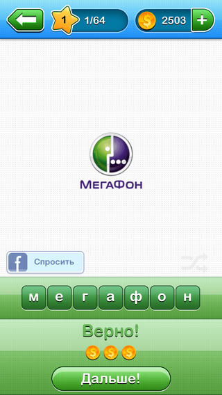 Задача участника игры — отгадать название фирмы по фрагменту её логотипа. В верхней части экрана находится рисунок-загадка, а в нижней — буквы, из которых нужно составить название. На первых уровнях представлены простые, известные логотипы, по мере прохождения сложность увеличивается. Если возникнут сложности, можно пользоваться подсказками, которые приобретаются за монетки — выигранные или купленные во встроенном магазине. В игре хорошая графика и весёлое звуковое сопровождение. Поддерживается интеграция в социальные сети. Рекламы нет.
