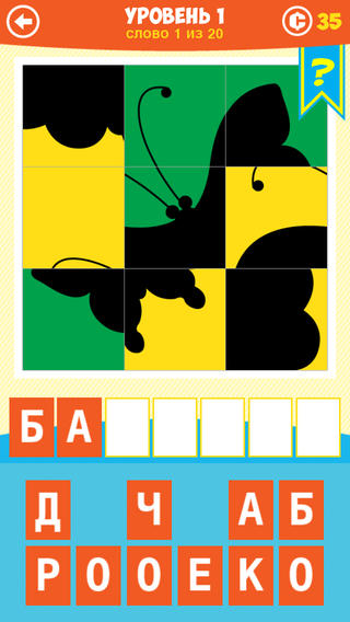 Игра представляет собой сочетание головоломки в жанре «угадай слово» и несложного паззла. На каждом уровне участнику предстоит отгадать название предмета по изображению его тени, предварительно собрав фрагменты тени в правильном порядке, как в обычном паззле. В нижней части экрана при этом располагаются буквы, из которых нужно составить отгадку. В игре 275 уровней возрастающей сложности и 2 бонусных уровня, в которых загаданы персонажи мультфильмов. Благодаря несложному управлению игра подойдёт детям. Кроме того, изменив настройки интерфейса, можно играть не на русском, а на английсокм, немецком, французском или испанском языках. Графика игры яркая, насыщенная. Игра полностью бесплатна и не содержит рекламы.
