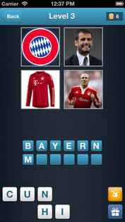 Задача игры — угадать футбольную команду по четырём изображениям, связанным с ней (это могут быть портреты футболистов, символика или интересные моменты матчей). Фотографии располагаются в верхней части экрана, а буквы, из которых нужно составить название команды, — в нижней. Играть можно в оффлайне, подключение к сети нужно только для добавления новых уровней. Графика яркая, фотографии качественные, управление очень простое.