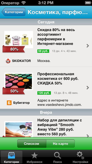 В современном мире все больше пользователей предпочитает использовать всевозможные сайты, позволяющие сэкономить на покупке различных товаров и услуг. Приложение под названием «КупонГид» от разработчика Артема Сосульникова обладает обширной базой купонов интегрированной с большинством крупных сайтов, которые позволяют получить скидку на огромное количество определенных услуг и товаров. В отличие от большинства сторонних решений «КупонГид» отличается симпатичным дизайном, а также впечатляющей базой доступных купонов, в которой необходимые для себя товары может найти практически каждый пользователь iдевайсов. Удобный поиск необходимых купонов возможен благодаря реализации разработчиком впечатляющего количества различных рубрик, а также функции поиска по ключевым словам.
