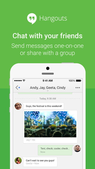 Hangouts для iOS — Это приложение делает общение более ярким. Добавляйте в чат фотографии и смайлики и устраивайте групповые видеовстречи. Hangouts доступен как для персональных компьютеров, так и для устройств Android и Apple. Особенности: — Возможность использовать фотографии и оригинальные смайлики, которые открывают новые грани общения с друзьями. — Возможность видеть, когда люди находятся на видеовстрече с другими пользователями, печатают вам сообщение или уже прочли ваше. — Возможность в любой момент начать видеовстречу, в которой может принять участие до 10 человек. — Возможность отправлять друзьям сообщения, даже если они в данный момент не в Сети. — Возможность использовать Hangouts на персональных компьютерах, а также устройствах Android и Apple. Другие преимущества Hangouts: — Видеовстречи могут синхронизироваться между разными устройствами, так что вы сможете начинать и продолжать их где угодно. — Сотни смайликов помогут вам точнее выразить свои мысли и чувства. — Благодаря истории вы всегда будете помнить о том, что вы обсуждали, а также находить присланные вам фотографии и видеть, с кем вы общались в видеочате. — Уведомления будут появляться только один раз – на устройстве, которое вы используете в данный момент. — Коллекции фотографий, доступ к которым вам предоставлен во время текстового или видеочата, можно будет посмотреть в любой момент. — Звуковые сигналы можно будет отключать в те моменты, когда вы хотите, чтобы вас не беспокоили. Примечания: — В отличие от Google Talk, Hangouts не поддерживает статус «Невидим».