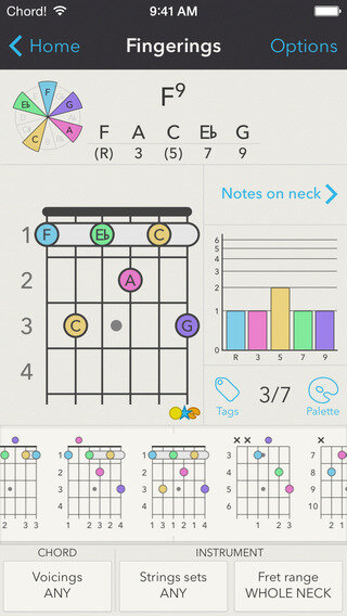 Программа, с помощью которой вы сможете выучить аккорды для гитары и прочих струнных инструментов, например бас гитара, укулеле, банджо и прочие. Здесь вы сможете узнать не только стандартные постановки пальцев для различных аккордов, но и их аналоги, полезные в случаях, если во время исполнения не удобно ставить пальцы в общепринятую позицию, либо если у вас порвана нужная струна. Вам не нужно быть профессионалом или даже знать ноты: программа содержит всю нужную информацию в простом и понятном виде, так что ознакомившись с содержимым приложения вы сможете играть не хуже выпускника музыкальной школы.