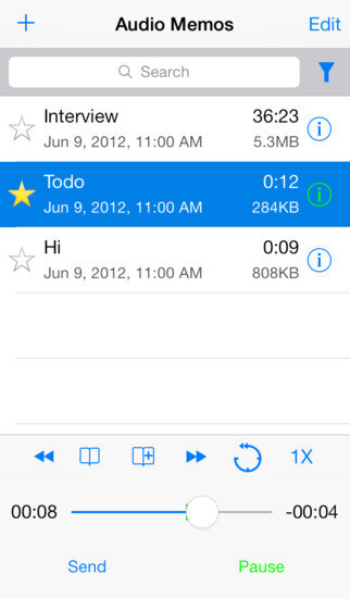 Профессиональная программа, которая поможет вам создавать голосовые заметки любой продолжительности на своем мобильном устройстве. Программа записывает звук в высоком качестве, поддерживает нормализацию и усиление звука, может продолжать запись даже в ждущем режиме, позволит устанавливать закладки для более удобного поиска, инициировать запись по голосовой команде или по таймеру, загружать записи на Dropbox, Google Drive, Box, Evernote, FTP или WebDAV, а так же содержит большое количество дополнительных функций.