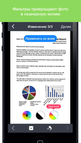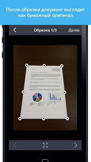 Эта программа позволит вам сканировать документы, статьи, изображения, а так же многое другое при помощи камеры вашего мобильного устройства. Программа Fine Scanner обладает технологией обработки изображений, что позволяет достичь высокой скорости работы и качества результата. Полученные документы могут быть сохранены в форматах PDF или JPEG, а так же экспортированы через e-mail, Box, Яндекс.Диск, Evernote, Dropbox, Facebook* или Google.Drive.