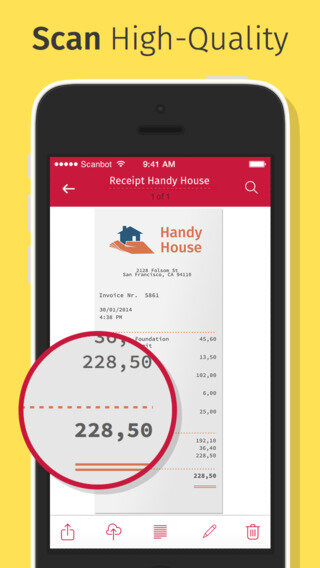 Это программа, которая позволяет сканировать любые документы в высоком качестве, а затем сохранять их в формате PDF. Полученные документы можно отправлять по электронной почте или загружать на Box, Dropbox, Evernote и другие облачные сервисы. Программа обладает самыми новыми технологиями мобильного сканирования, что позволяет сканировать документы с разрешением до 200 точек на дюйм. Так же, при помощи функции автоматической оптимизации качества, уменьшения размытия вы сможете значительно улучшить качество сканов.