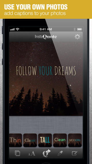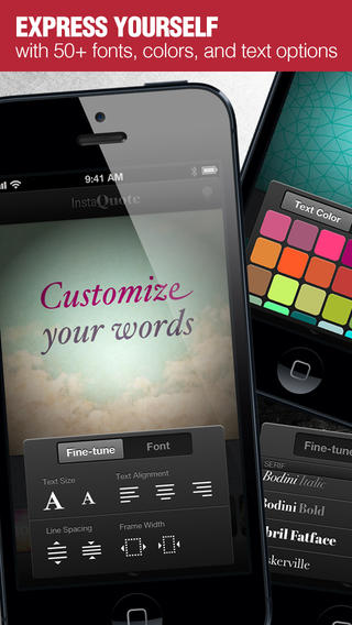 Эта программа позволит вам добавлять текст и всевозможные вдохновляющие цитаты на свои фотографии и загружать их в Instagram*. Программа InstaQuote включает в себя 19 шаблонов текстов, более 50 уникальных шрифтов, позволяет изменять размер шрифта, его позицию и цвет, обладает возможностью использования ваших фото в качестве фона и функцией экспорта полученных изображений на Facebook*, Twitter или Instagram*.