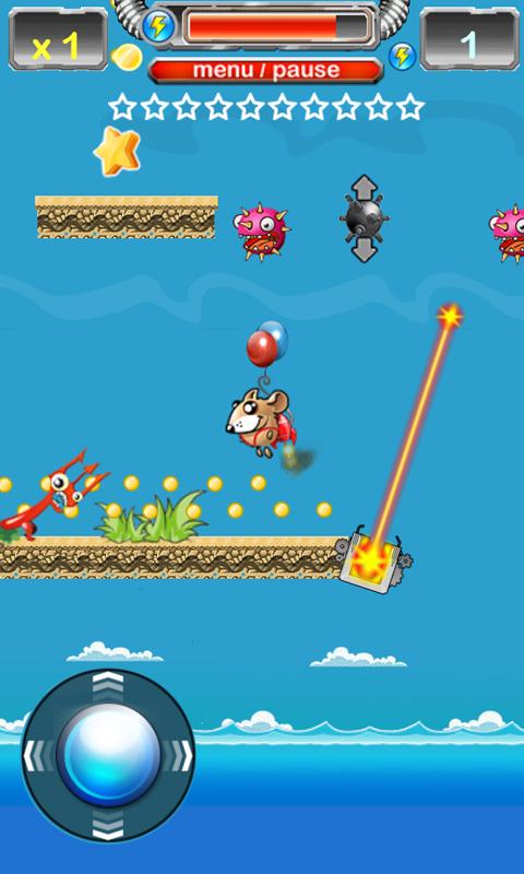 Мечта есть у каждого из нас. У каждого. Даже маленькая мышка — мечтает стать космонавтом и отправиться на луну. Наш герой одевает реактивный ранец и отправляется на встречу приключениям. На своем пути наша летающая мышь встретит множество разнообразных врагов, пройдет разные уровни. По пути мышке нужно собирать звезды, собирать монетки, чтобы покупать оружие и апгрейдить свои вещи. Все враги коварны и опасны, каждый владеет отличительными умениями. Все зверушки отличаются друг от друга, это настоящие монстрики. Чтобы победить нужно прыгать на врагов как марио, а после покупки апгрейда и стрелять в врагов. Это будет смешно! Однако, нужно следить за временем, вода в которой живет злая акула — поднимается, это превращает игру в раннер. Нас ждет увлекательная аркада. Удивительный, красочный мир, красивая графика, увлекательный геймплей. Множество уровней сочетающих в себе отличный боевик, платформер и головоломки. В некоторых уровнях вам нужно выбрать временной промежуток, чтобы пролететь между лазерами. В других быть осторожным с минами — они взрываются! В последнем уровне мышка получает ракету и отправляется на луну, это не сложно и увлекательно — лететь на луну. Для детей в игре найдется множество интересных и веселых заданий. Простое управление для всех. Заработанные деньги можно потратить на апгрейды или просто одевать своего героя в занятные вещи — солнечные очки, головные уборы, кроссовки, кеды. Наш герой любит крутые штучки и новые приключения. Эта игра займет вас на долгие часы. В ней множество заданий и никогда не скучно. Тут есть чем заняться! Огромное разнообразие врагов, интуитивно понятное управление.