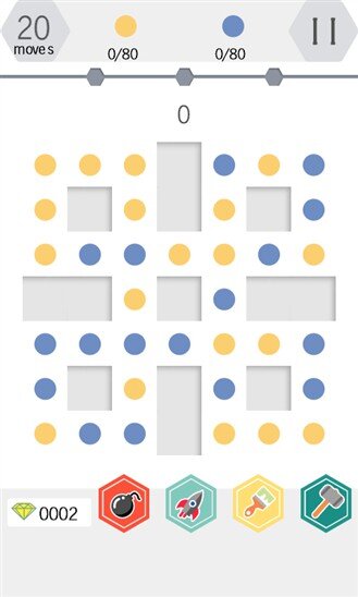 Новая интересная головоломка, в которой вы должны будете соединять точки в единую цепочку. У вас есть задание — убрать определенное количество точек каждого из цветов и всего несколько ходов на его выполнение. По диагонали ничего соединять нельзя, но зато есть небольшая хитрость, которая безусловно поможет закончить уровень, если конец цепочки соединить с ее началом, то исчезнут все точки такого же цвета, а фишки оставшиеся внутри получившейся фигуры превратятся в бомбочки. TwoDots Puzzle доступна бесплатно, но содержит внутренние покупки — алмазы покупаются за реальные деньги. За алмазы можно покупать жизни, дополнительные ходы или бонусы, которых всего 4: бомба, ракета, перекраска и молоток.