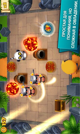B игре Tiki Monkeys для Windows Phone обезьянкам понравились сокровища пиратов и они решили украсть их с корабля, оставив лишь шкурку от банана. Один из пиратов заметил это и решил сойти на берег, чтобы отыскать наглецов и вернуть то, что принадлежит ему и его команде. Вам предстоит сыграть именно за этого пирата, который вооружен лишь пистолетом и мечом. Отыщите сокровище, устраняя преграды на своем пути. Дорогу Вам будут преграждать коварные обезьянки, которые могут надеть сковородку для защиты от Ваших пуль или превратиться в дерево. Помимо этого, на Вашем пути будут попадаться колючие растения, раскаленные шары и пушки, которые стреляют фруктами. Разработайте свою специальную стратегию и используйте различные комбинации, чтобы быстро уничтожить препятствия и заработать как можно больше монет.