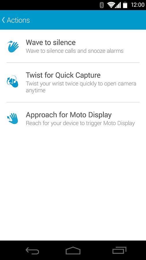 Действия Moto в настоящий момент поддерживаются только на новой модели Moto X (2-го поколения).