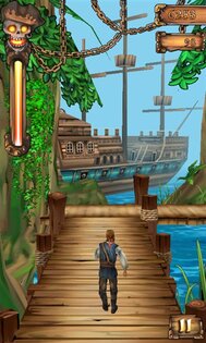 Бесконечный раннер, один в один похожий на первую часть Temple Run. Вы — пират, за вами гонится злой скелет, и вы от него удираете. Управление происходит акселерометром и свайпами влево-вправо при поворотах, а также вниз-вверх для скольжения и прыжка. Мне понравилось само оформление игры, оно выглядит привлекательно и, можно сказать, выполнена лучше чем в первом Temple Run, но физика конечно подкачала, да и анимации движения персонажа выглядят… странными. Несмотря на это, игра Pirates Don't Run получилась очень интересной и играбельной. Очень качественный продукт, да еще и бесплатно, поэтому, я думаю, вам стоит попробовать в нее поиграть.