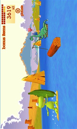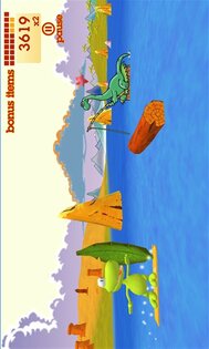 Динозавр Допи — забавный персонаж, которого придумал детский писатель и иллюстратор Майк Хиггс еще в 80-х годах. Dopey and the Meteors — игра, созданная по мотивам книг Хиггса. Играйте за динозаврика Допи и помогите ему убежать от метеоритного дождя. Ваша цель — пройти как можно больше локаций на скейтборде, перепрыгивая через различные препятствия и собирая фрукты для восстановления энергии. Допи будет ехать сам, вы должны будете пригибаться и прыгать нажатиями: влево — пригнуться, вправо — прыжок. Энергия будет тратиться при каждом наезде на препятствие, но не существенно — игра, по сути, детская, и играть долго, мне кажется здесь не проблема.