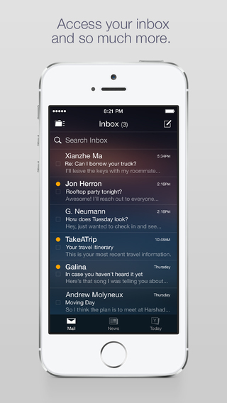 Yahoo! Почта для — Официальное приложение Yahoo! Почта для iOS. Особенности: — Возможность подключить несколько учетных записей электронной почты Yahoo!; — Предварительный просмотр фотографий в вашем почтовом ящике; — Улучшенная интеграция с Yahoo! Messenger; — Push уведомления о входящих письмах; — Отправка и получение вложений электронной почты.