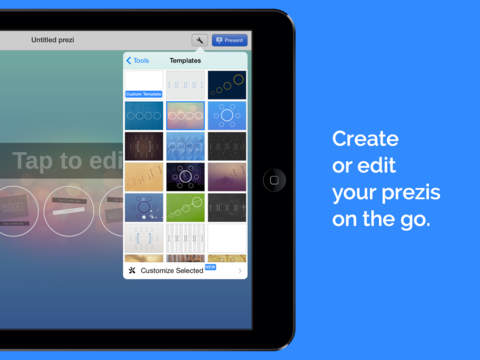 Программа для создания красочных презентаций для устройств iPad. Здесь вы можете выбрать любой из 15 встроенных шаблонов для ваших презентаций, сменить расположение объектов и подгонять их по размеру, добавлять рамки, загружать изображения из интернета, памяти устройства или с камеры устройства. Созданные в приложении презентации будут доступны для просмотра онлайн.