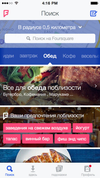 Foursquare поможет вам изучить мир вокруг. Поддерживайте связь с друзьями, получайте интересные подсказки и зарабатывайте скидки и награды. Когда вы в пути, вы можете легко сказать друзьям, где вы находитесь, обмениваться фотографиями, получать их комментарии и получать подсказки для заведений. Во множестве мест предлагаются скидки и подарки пользователям foursquare, и вы получите очки и бейджи за то, что вам нравится.