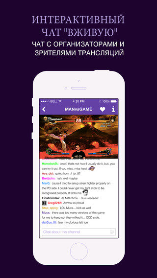 — Программа, которая позволит вам просматривать видео о любимых компьютерных или консольных игр в любой момент. Смотрите трансляции лучших игр и событий игрового мира, выполняя поиск по игре или имени канала, а так же общайтесь с другими пользователями при помощи полнофункционального чата.