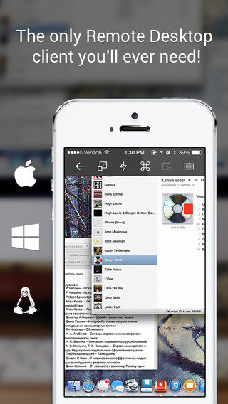— Удобное приложение, позволяющее подключение к удаленным рабочим столам под Windows и Mac. Вы сможете подключиться используя VNC (Screen Sharing), RDP (Windows Remote Desktop), SSH and Telnet сессии. Приложение обладает интуитивно понятным интерфейсом и возможностью потокового воспроизведения аудио файлов.